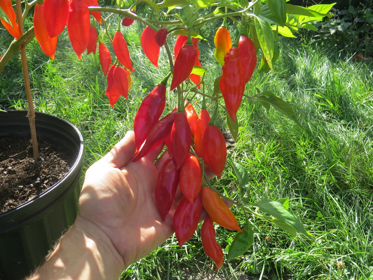 Piment Bulgarian carott Piment très fort. Les fruits font 9 cm de long. Leur couleur passe du vert clair à l'orange vif, ressemblant ainsi à une carotte. Originaire de Bulgarie. 1,50€ |