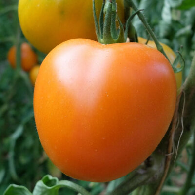 Tomate coeur de boeuf géant orange Variété très productive de tomates orange en forme de coeur. Saveur très douce, fruits très charnus avec très peu de graines. Précoce. 1,50 € |